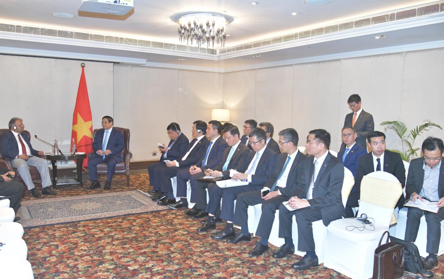 Chiều 31/7 (giờ địa phương), tại thủ đô New Delhi, trong khuôn khổ chuyến thăm cấp Nhà nước tới Ấn Độ, Thủ tướng Phạm Minh Chính tiếp ông Arun Kumar Singh, Chủ tịch tập đoàn ONGC Videsh Ltd. - Công ty con của tập đoàn dầu thô và khí đốt tự nhiên lớn nhất của Ấn Độ, ONGC.