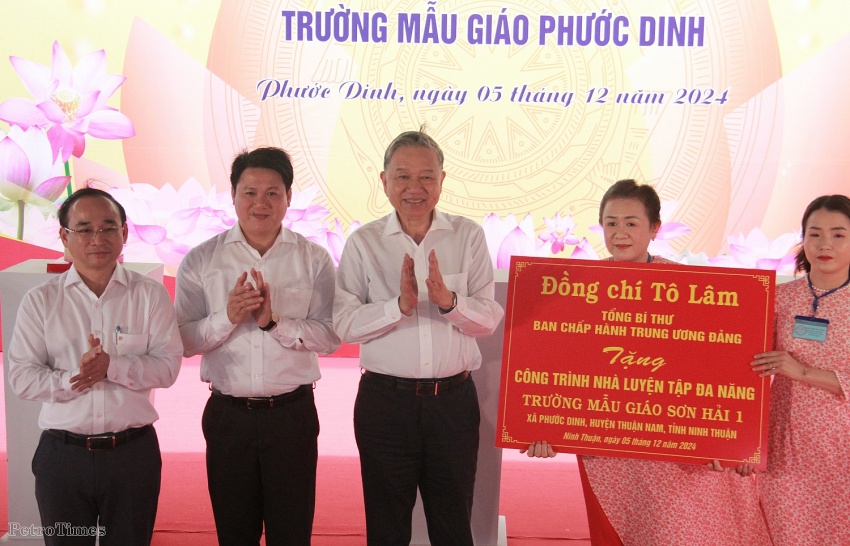 Nhân chuyến công tác tại tỉnh Ninh Thuận, Tổng Bí thư Tô Lâm cùng đoàn công tác Trung ương đã đến trao tặng và dự Lễ động thổ công trình nhà luyện tập đa năng và các hạng mục phụ trợ, cùng các thiết bị, dụng cụ dạy và học của Trường Mẫu giáo Phước Dinh, xã Phước Dinh, huyện Thuận Nam.