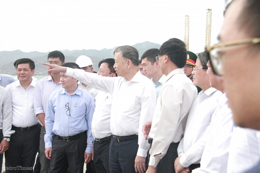 Tổng Bí thư Tô Lâm và đoàn công tác Trung ương đến thăm và kiểm tra thực địa Cảng biển tổng hợp Cà Ná.
