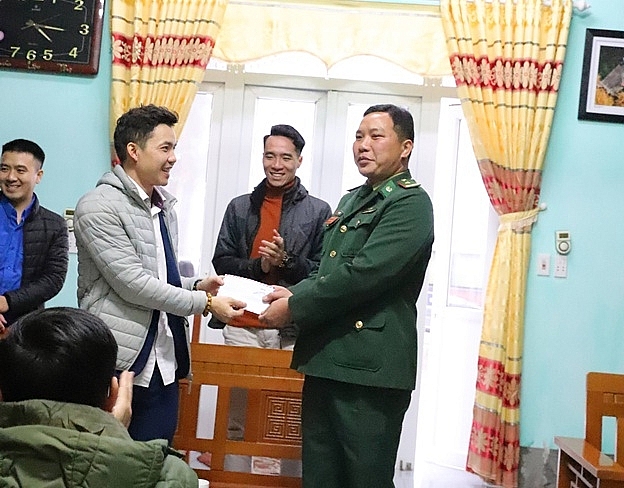 Cũng nhân dịp này, Đoàn công tác đã đến thăm và tặng quà và động viên cán bộ chiến sĩ Đồn Biên phòng Thàng Tín - đơn vị quản lý, bảo vệ trên 20 km đường biên giới, với 9 cột mốc thuộc địa bàn 3 xã Thàng Tín, Pố Lồ và Thèn Chu Phìn, huyện Hoàng Su Phì, tỉnh Hà Giang. Chia sẻ với đoàn công tác, Thiếu tá Lù Văn Tiến - Phó Đồn trưởng nhấn mạnh: Những món quà và tình cảm của Đoàn dành tặng bà con và cán bộ chiến sĩ đúng vào dịp Noel và đầu mùa đông lạnh giá của vùng cao, đã mang ý nghĩa vô cùng sâu sắc, thể hiện rõ tình cảm gắn bó của đồng bào miền xuôi với miền ngược, tình quân dân bền chặt. Đồng thời là nguồn động viên to lớn đối với cán bộ chiến sĩ Đồn Biên phòng Thàng Tín, giúp các đồng chí vững vàng tay súng bảo vệ biên cương của Tổ quốc.