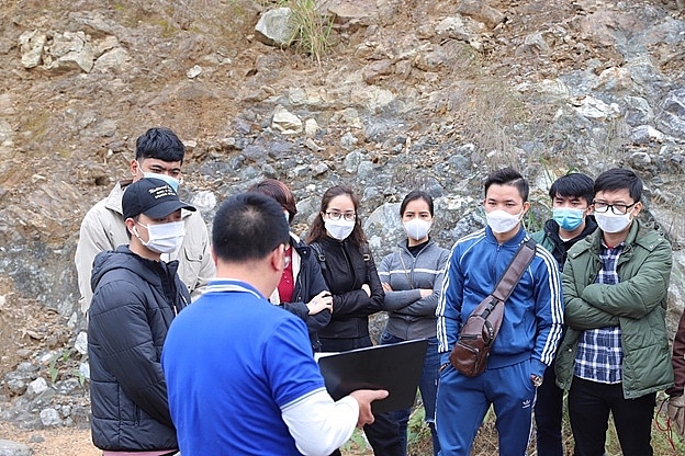 Tham gia và hướng dẫn thực địa có PGS-TS. Hoàng Văn Long - Chuyên gia Trung tâm Nghiên cứu Tìm kiếm Thăm dò và Khai thác Dầu khí - Viện Dầu khí Việt Nam.